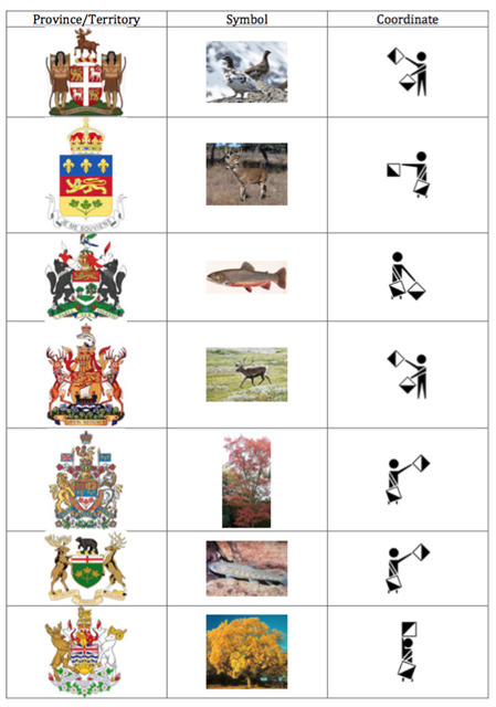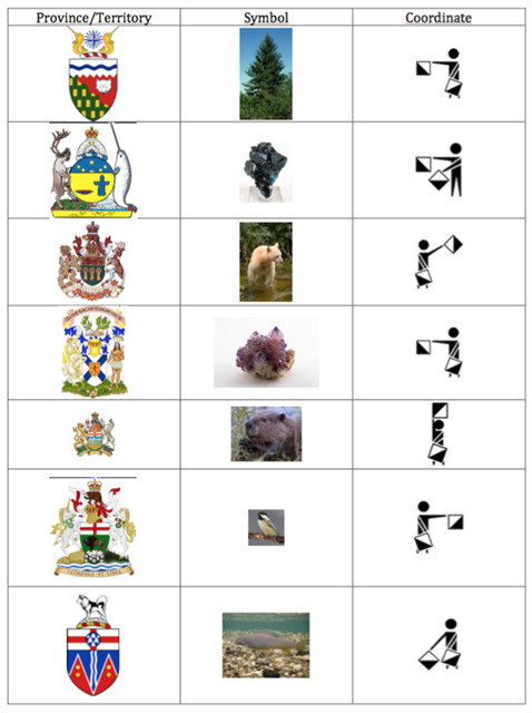 Veuillez associer les armoiries de la province ou le territoire avec l’un de ses symboles provinciaux/territoriaux pour trouver les coordonnées justes.