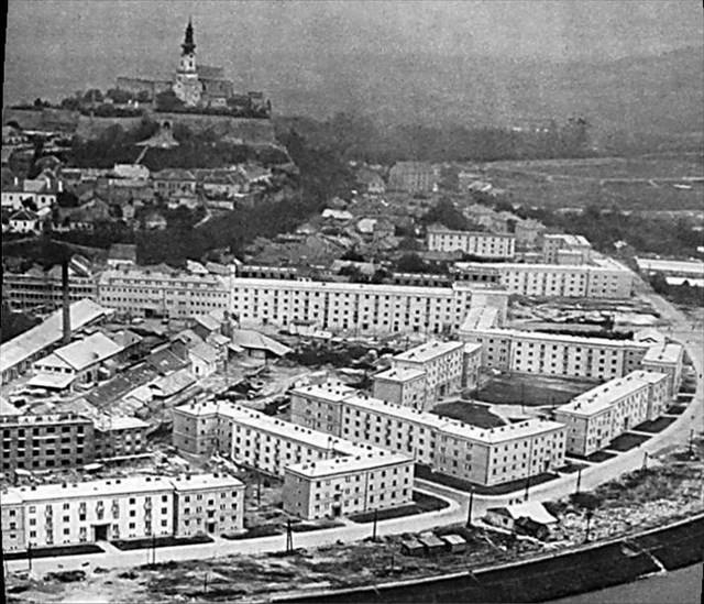 Obytná štvrť s 500 bytmi je situovaná v blízkosti hradu. Tvorí horizontálnu podnož výškovej dominanty hradného vrchu a zároveň i vstupnú zónu do historickej časti mesta. Z druhej strany ju ohraničuje oblúk koryta rieky Nitry. Nábrežie s pásom zelene je aktívnou súčasťou súboru. Predmostie patrí ku kvalitným realizáciám historizujúceho socialistického realizmu. Riešenie usiluje o napojenie novej výstavby na historické štruktúry. Na domoch sa vyskytujú formálne prvky (napr. francúzske okná, rímsy) typické pre toto obdobie. Priestorové usporiadanie cituje archetypické predlohy symetrických námestí, parkov a ulíc s kolonádami a alejami. Sídlisko nepostavili v plnom rozsahu. Domy sú na rozdiel od projektu o jedno podlažie nižšie. Dva výškové objekty nestoja a vynechali sa i mnohé výtvarné detaily.