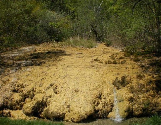 In these waters, animal or plant debris form nucleation points for the precipitation of calcium carbonate: these are the petrifying fountains.