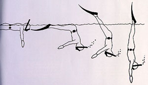 Phase 3: As soon as the spearfish or snorkel fins are immersed, a beating of legs is given to continue the immersion.