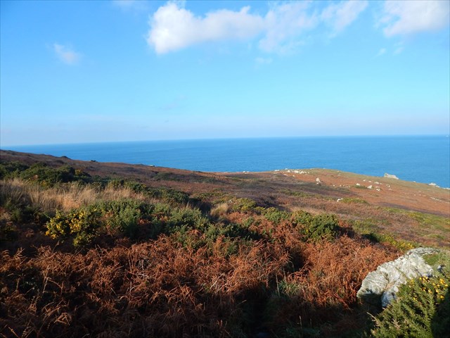 The view opens up to reveal the SWCP snaking it's way to your left and to your right. Gorse heathland downwards towards the rocks and the sea beyond. The views are spectacular.