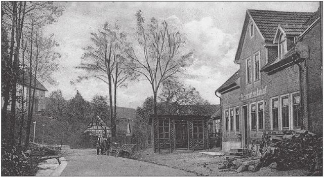 Dieses Bild zeigt das Restaurant “Zum Bahnhof” um 1910. Aber Vorsicht dieser Titel könnte euch in die Irre führen. Denn das 1846 errichtete Gasthaus “Menzel” wurde erst aufgrund der Unterbringung von Arbeitern an der Bahnstrecke entsprechend umbenannt. Und das war zu Beginn des 20. Jahrhunderts. Nach dem Umbau im Jahre 1987 erhielt das Restaurant seinen heutigen Namen, der aber hier nicht verraten wird. Das Gebäude ist in seiner äußeren Form bis heute erhalten geblieben. Das Umfeld hat sich jedoch geringfügig verändert.