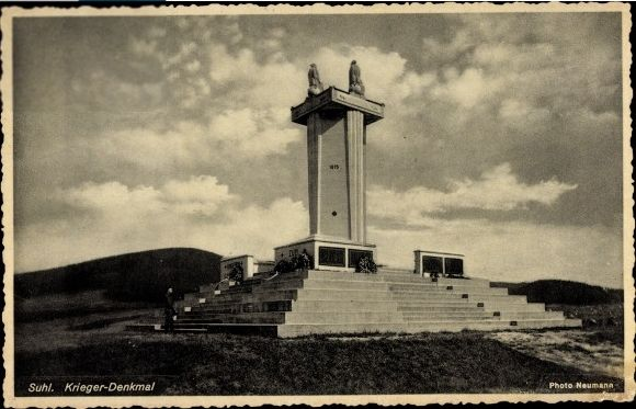 Mit dieser kleinen Serie möchte ich einige Gebäude und Denkmäler der Stadt Suhl vorstellen, die es heute in dieser Form zum Großteil nicht mehr gibt. Findet heraus, an welchen Orten sich die abgebildeten Objekte befunden haben. Bei der Recherche könnten neben dem Internet auch die Bücher "Suhler Alltagsimpressionen" und "475 Jahre Suhl" von Gerd Manig und Dieter Schellenberger hilfreich sein. Auszüge aus diesen Büchern sind auch bei Google Books verfügbar. Ein Blick auf die Hintergrundbilder dieser Serie hilft auch manchmal weiter. Ich wünsche viel Spaß beim Rätseln und Knobeln. Und wie beim letzten Mal beginnen wir auch dieses Mal wieder mit einem Kriegerdenkmal.
