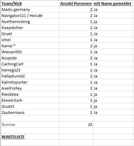 13:30 - 13:55 Uhr: Treffen, Cachertalk, TB/Coins tauschen und....loggen :-)
