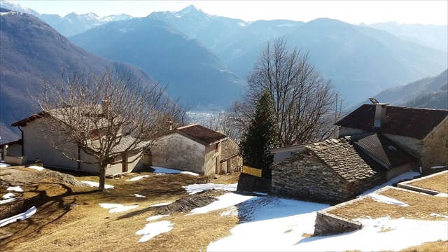 Von den Monti geniesst man eine eindrückliche Sicht auf das Bellinzonese, auf die Riviera und auf den Gotthardmassiv.