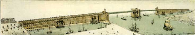 De kogel is door de kerk: er komt een fietsbrug over het IJ! Als je op de plek waar je nu staat rond 2025 omhoog kijkt, kijk je hier tegen de onderkant van een brug aan. Al letterlijk eeuwenlang probeert men de (vaste) oversteek te maken van het centrum van Amsterdam naar de overkant, maar om één of andere duistere reden is dit tot nu toe nooit gelukt. Aan ideeën heeft het niet gelegen. Zie bijvoorbeeld dit ontwerp uit 1857: