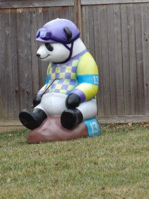 This is another one of those statues that I would not have found but for others indulging my obsession. One of my coworkers sent me a text one day after her meeting at the nearby Fish Taco. "Panda in a yard nearby." That's it. No other information...not even the address to the Fish Taco. After a little help from Google I found the location of the restaurant and went off in search of the panda. Finding the panda was easy enough. Finding a cache location...not so easy. There's a traditional cache right THERE so I can't do a traditional. There aren't enough (any) numbers to do a multi. So I gave up for a while. But, obsessions being what they are, I finally decided to do a mystery cache. Don't worry...it's an easy one.