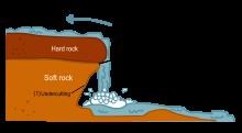 Plunge: Water descends vertically, losing contact with the bedrock surface.