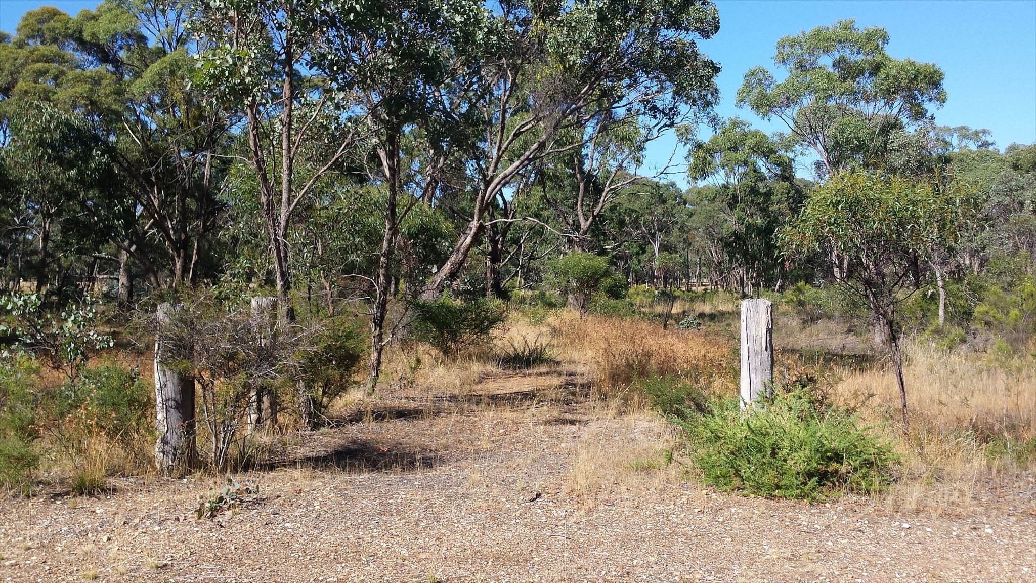 From the junction with the Maldon line the railway passed over a small timber bridge (now removed) and entered an area of bush, which is where this cache is situated. This cache is best accessed either from one of the bush tracks at the first waypoint of [SL] - Laanecoorie Junction or by walking along the trail from [SL] - Burnt Bridge.