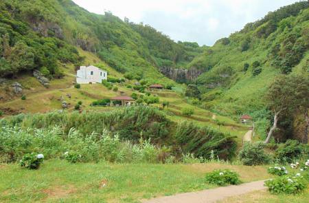 O PT leva-o a uma grande aventura num trilho onde antigamente abastecia-se uma azenha. Nesta zona conhecida por Risco aproveite para explorar o espaço, das cascatas sendo o Salto da Farinha a maior delas todas ao longo desta volta irá passar pelo Poço Azul, onde pode aproveitar para se refrescar e seguidamente pela Ponte de Nosso Senhor ate ao Miradouro do Pesqueiro, onde avistará a costa norte onde terminara o seu passeio ate ao Padrão histórico das Alminhas, monumento que assinala o desembarque das forças liberais vindas da ilha Terceira, em Agosto de 1831, no contexto da Guerra Civil Portuguesa (1828-1834).
