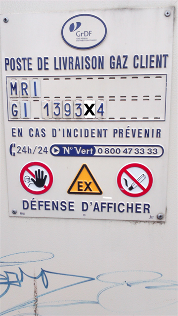 Sur celui-ci sont inscrits des chiffres, remplacez le "X" sur la photographie par le chiffre noté sur place dans la formule suivante pour obtenir les coordonnées finales de la cache: