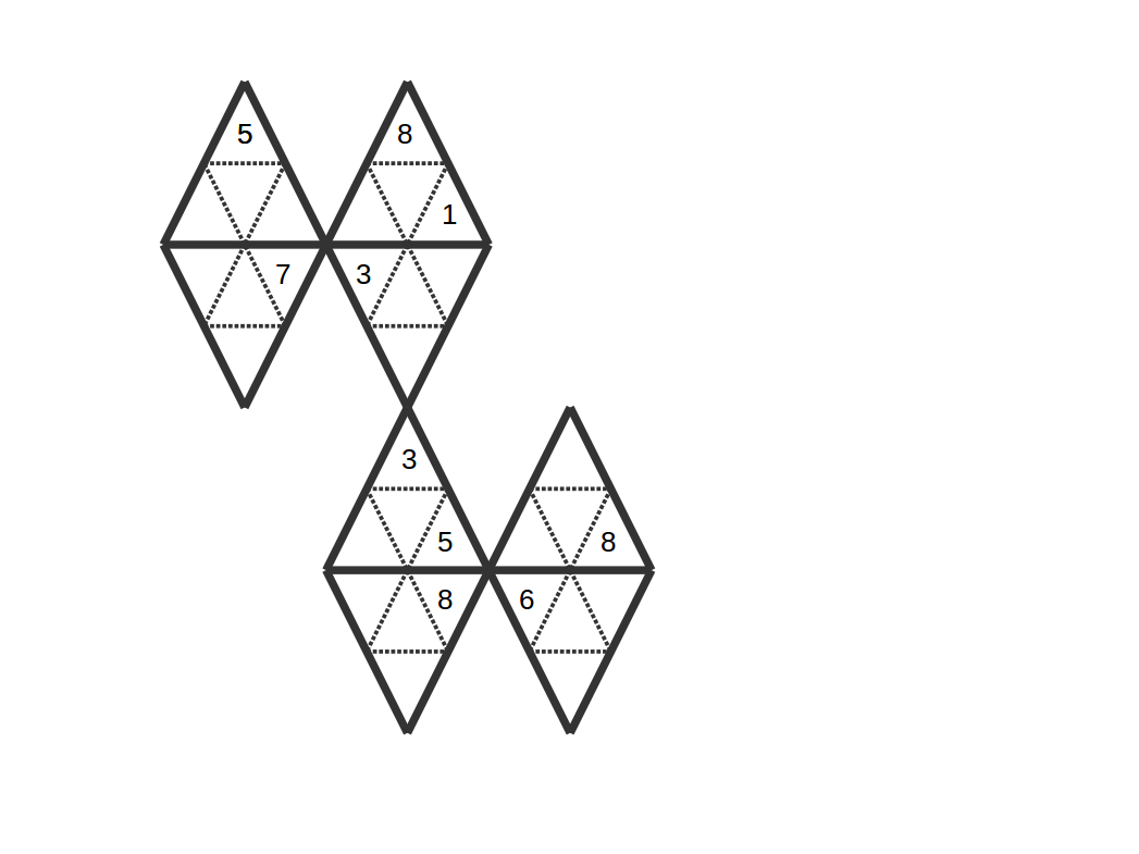 * Chaque face est divisée en 4 petits triangles, et chaque petit triangle contient un chiffre compris entre 1 et 8,