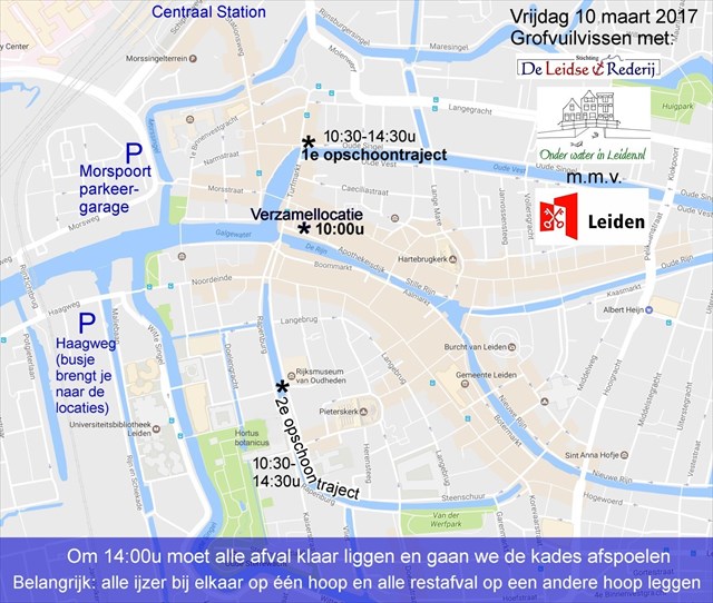 • Hoe laat: om 10:00u ontvangst met koffie & koek aan Apothekersdijk 5 (Havenkantoor St. de Leidse Rederij). We leggen uit wat de opschoonactie inhoudt, geven veiligheidstips en verdelen de aanwezigen in twee groepen.