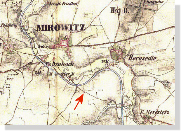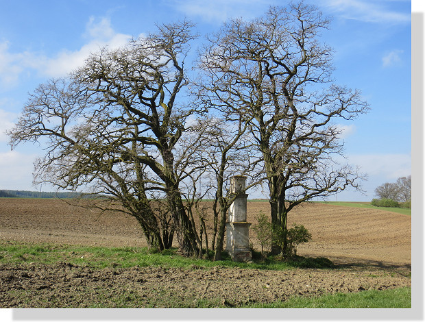 Jednou mne takhle při toulkách kolem Mirovic přilákalo nějakou svou silou místo se skupinou vzrostlých stromů, pod nimiž se mi zjevila boží muka. K místu, které mne enormně přitahovalo, jsem nepřistupoval optimálním způsobem, ale od severozápadu ve směru cesty našich předků. Následně jsem dumal, proč se tato skupina tří akátů trnovníků a objektu božích muk nachází uprostřed pole. Pohled na starou mapu mi prozradil, že seskupení se kdysi nacházelo na poměrně využívané cestě z Nerestec směrem k nádraží a ke mlýnu v Mirovicích. Dnes už se však obyvatelé tohoto kraje pohybují jiným způsobem než pěšky či povozem, ale hlavně po jiných trajektoriích.