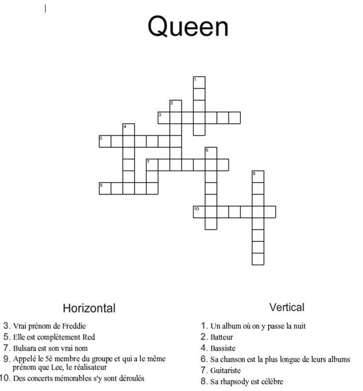 Après avoir réalisé le mot croisé ci-dessous sur le groupe Queen, il faudra en déduire les coordonnées de la cache bonus ;)