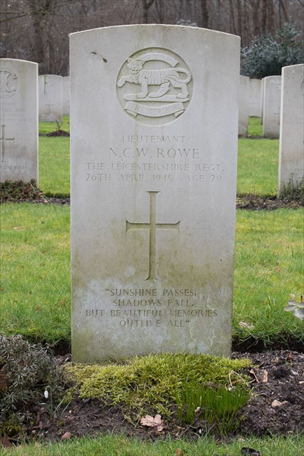Lieutenant Rowe; Leicestershire Regt.; 26 april 1945; begraven te Jonkerbosch War Cemetery; Nijmegen