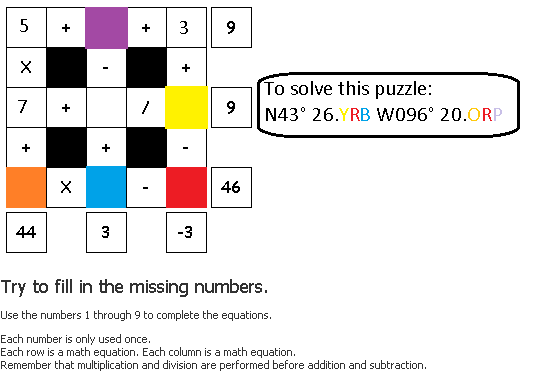 To find and log this cache you will need to solve this puzzle