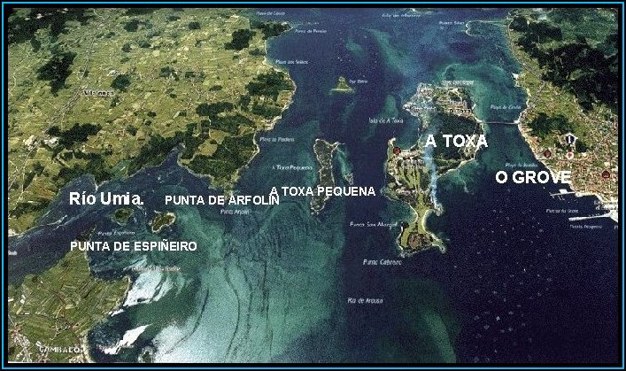 Costa incluida en el Iba Entorno marino de las Rías Baixas. La franja costera de la zona fluvio-marina de la desembocadura del Río Umia está protegida por el LIC Complexo Ons-O Grove. Aunque se presentan con importancia los hábitats del 1110 y 1140, bancos arenosos y/o fangosos intermareales y submareales, lo que realmente da valor a esta unidad son las marismas (grupo 13), unas 90ha en la desembocadura del Río Umia.