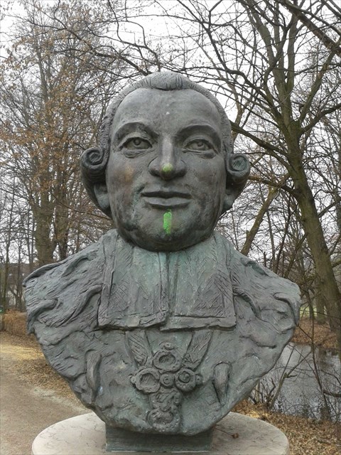 Ebenfalls darauf zu finden die Jahresspanne, in dem die Büste her- und aufgestellt wurde: "IJKL-MNOP"