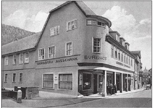 Die Gaststätte „Burghof*, hier 1930, wurde am 11. November 1927 eröffnet und war als Tanzgaststätte bis in die siebziger Jahre bekannt. Zu den Pächtern gehörten von 1937 bis 1952 die Gebrüder Scholz, und als Oberkellner sind den Suhlem noch Berthold Anschütz und Helmut Gropp bekannt. Das Gebäude steht noch. Nach vollständigem Umbau wird es jedoch heute ganz anders genutzt. Wir suchen die Bezeichnung der Firma, die als Hauptnutzer im Erdgeschoss residiert. Auch hier bilden wir den Buchstabenwortwert.