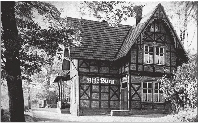 Die „Alte Burg“ zeigt sich dem Betrachter im Jahre 1948. Sie war eine beliebte Ausflugsgaststätte und gehörte zur Burgbrauerei Jung. Der Erbauer und erste Wirt Franz Leser eröffnete am 28. Oktober 1880 die Gaststätte. Zum Haus gehörte eine Kegelbahn, ein Musikpavillon sowie der Schützenstand des Vereins „Schützenlust“.