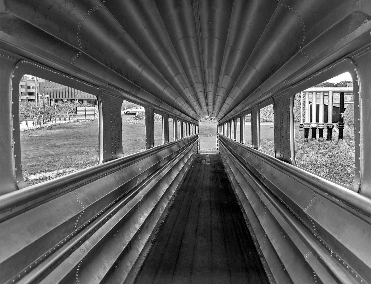 De igual manera más recuerdos afloran en mi mente al acercarme a los alrededores del espacio cultural y ver el “vagón de tren”, antigua pasarela de 26 m que permitía el embarque de los pasajeros a los buques que atracaban cerca de la actual estación marítima, desde el nivel de la calle hasta el barco. Su forma nos recordaba a la de un vagón de tren y de niños la recorríamos por el interior cuando no estaba siendo usada, emulando ese medio de locomoción del que no se dispone en la isla.