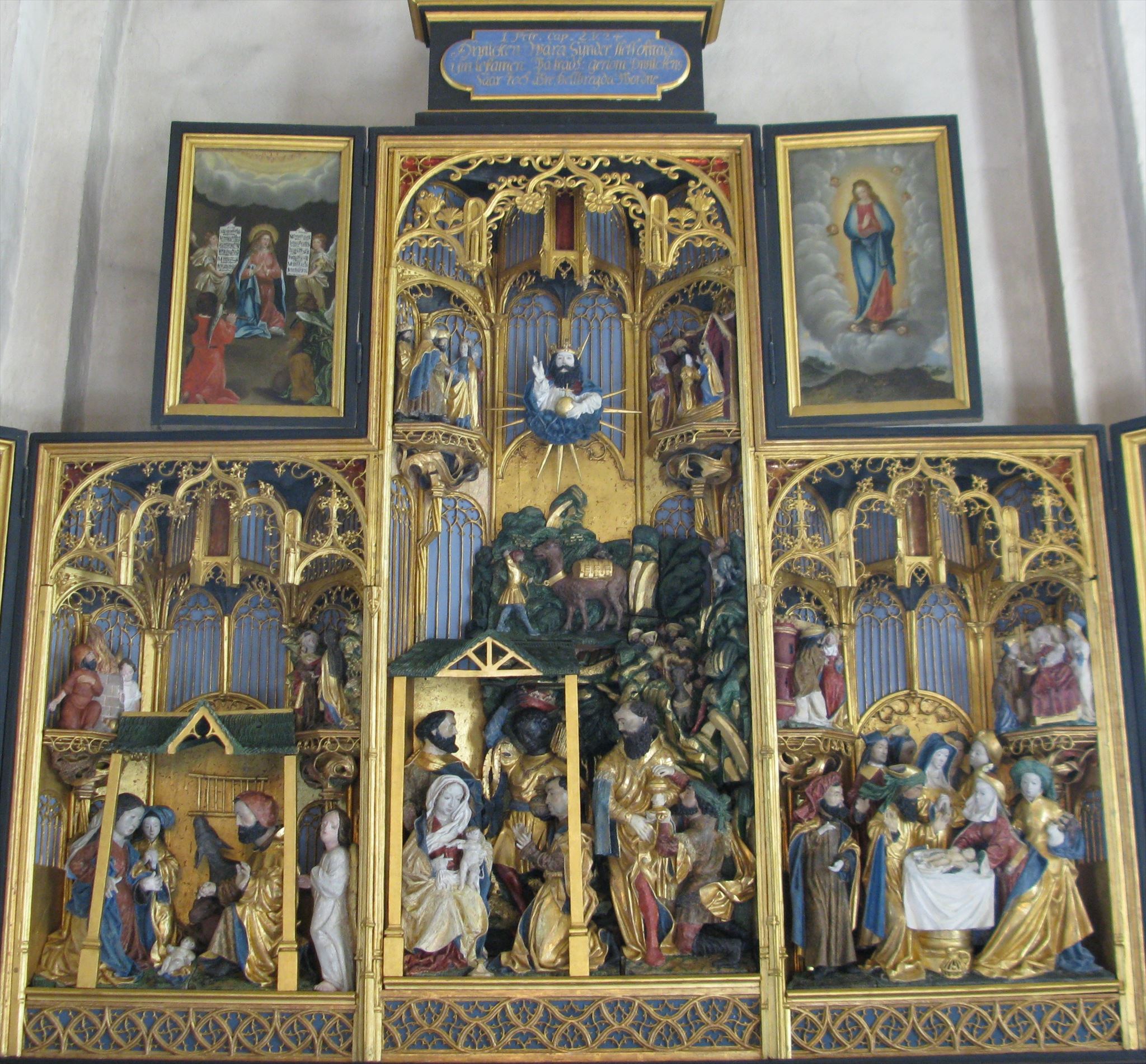 - I) The mechanical organ from Erik Adolf Zetterquist was installed in 1856. How many metal pipes are visible on the front of the organ? Look carefully at the middle section. There are as many pipes in all the three sections. The number of pipes = II