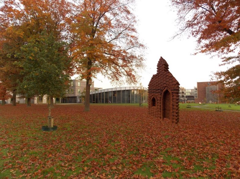 Het rode bakstenen kunstwerk staat in een rij van monumentale eiken op een plek van een missende boom. Qua vorm lijkt het op een bouwwerk, maar het is als zodanig niet te gebruiken. Het bestaat slechts uit een façade, die wel aan beide zijden “toegankelijk” is. Door plaatsing van een raam t.o.v. een deuropening is er een doorkijkje ontstaan, waardoor de suggestie gewekt wordt dat er toch een binnenruimte is.