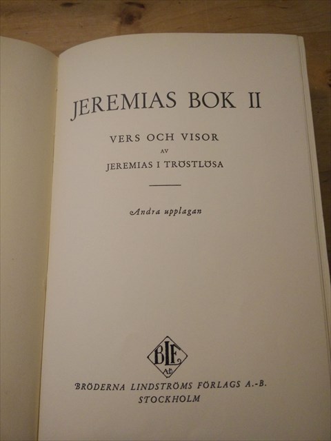 Jeremiah's interest in old, local dialect coincided with the growing interest of homeland culture in Sweden in the 1890s. Among the ingredients that characterized his poetry was a delight in the sublime of nature and its plants and inhabitants. Jeremiah possessed his own, calm, warm and humorous tone of high poetic value, true human knowledge, moods and accurate descriptions, sincerity and realism. Many of Jeremiah's poems have been set music to, several by himself. In the years 1910-55 there were fifty-one recordings with Jeremiah's songs. In recent years, Helen Sjöholm, Jeremias Session band and Sven-Ingvar's are among them who have recorded songs by Jeremiah.