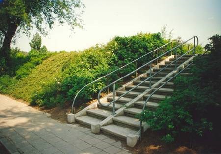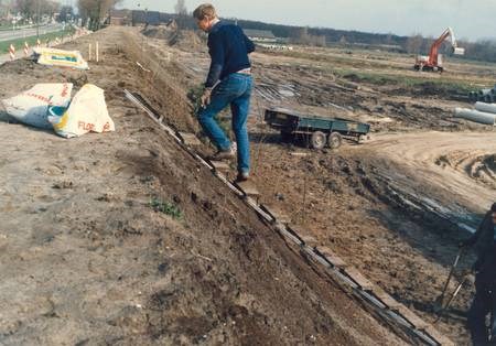 Op de foto’s de geluidswal tussen de Rijksstraatweg en de woonwijk Commandeurs. Situatie maart 1987 (aanleg) en mei 1993 (trap over geluidswal). De foto’s zijn gemaakt door en met toestemming gebruikt van Rob van Westbroek. De trap is helaas (tot groot verdriet van de CO die er vlak naast woont) jaren geleden op last van de bewoners na overlast grotendeels verwijderd. Als je goed kijkt op de locatie van de cache kun je bepaalde elementen van de trap nog terug vinden.