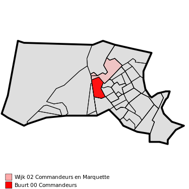 Commandeurs is een woonwijk uit de late jaren ’80 en vroege jaren ’90 van de vorige eeuw. De wijk wordt gekenmerkt door een grote verscheidenheid aan woningen en woningtypes. Zowel appartementen, rijwoningen, seniorenwoningen, twee-onder-één-kap woningen en vrijstaande woningen komen in deze wijk voor. De woningen in de wijk staan per straat allemaal in vrijwel dezelfde rooilijn, slechts kleine verspringingen komen voor. Op enkele locaties zijn geheel gesloten zijgevels aan de openbare ruimte gebouwd.