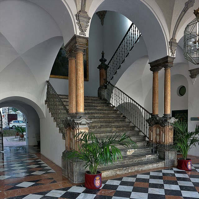 El Palacio de la Merced, antiguo convento de la Merced Calzada, es la sede de la Diputación Provincial de Córdoba, en Córdoba (España). Antiguo convento de la Merced Tradicionalmente el origen y fundación de este convento va unido a la figura de San Pedro Nolasco, a quien el rey Fernando III de Castilla donó la basílica de Santa Eulalia tras la conquista de la ciudad. El edificio ha sufrido numerosas transformaciones desde su fundación. El conjunto actual es obra del siglo XVIII, aunque reformado en 1850, cuando fue destinado a hospicio, y en 1960, para adaptarlo a sede de la Diputación Provincial, adquiriendo su actual fisonomía bajo la dirección del arquitecto Rafael de la Hoz Arderius. En enero de 1978 la iglesia sufrió un gran incendio provocado por un demente que destruyó el retablo mayor y todos los enseres que la adornaban. Actualmente se procede a su recuperación, a expensas del citado organismo. El Antiguo convento de Nuestra Señora la Merced está declarado Bien de interés cultural en la categoría de monumento desde el año 2008.1 Antiguo lugar sagrado En las excavaciones realizadas para construir el garaje entre los años 1973-1974, aparecieron restos de una construcción de sillares romanos que aportaron abundante cerámica aretina del tipo H 8. Con anterioridad habían aparecido restos de un baptisterio y de una cripta, que fue identificada con la de Santa Eulalia. Algunos historiadores han pensado que se trata de una construcción visigoda de la época de Recaredo, si bien no se descarta la posibilidad de que pudiera ser de época paleocristiana. De la piedad medieval a la magnificiencia barroca