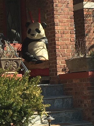 The cache is a magnetic nano in a typical urban hide. It's across the street from the panda on the porch and a few doors down from hidden panda.
