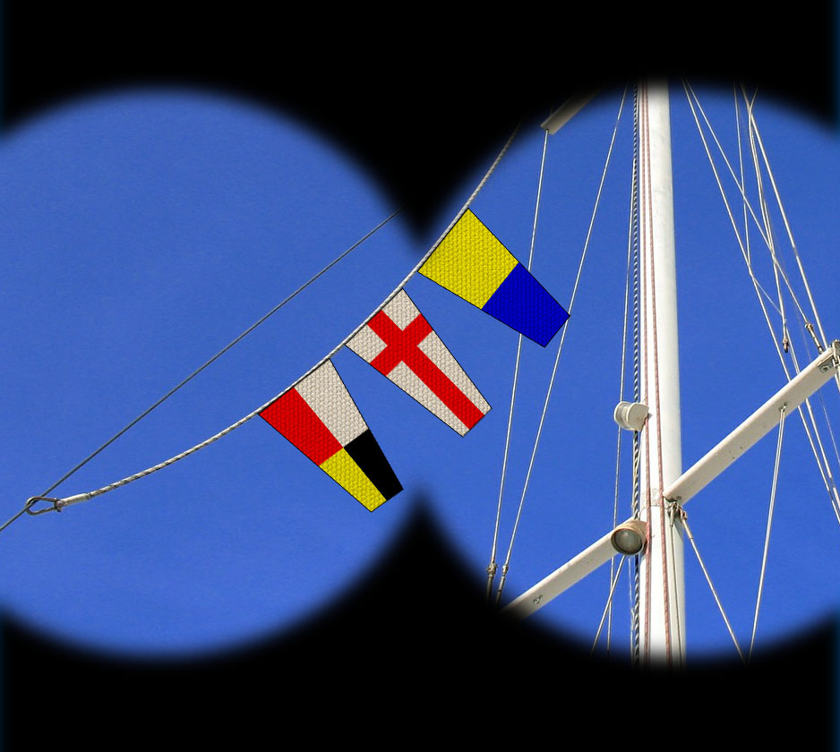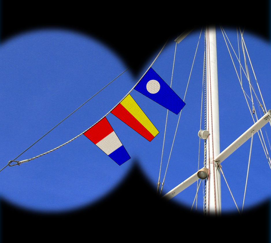 Les bateaux arborent de petits drapeaux de différentes couleurs. Malgré leurs connaissances, les jeunes gardes côtes ne comprennent pas ce que signifie ces drapeaux...