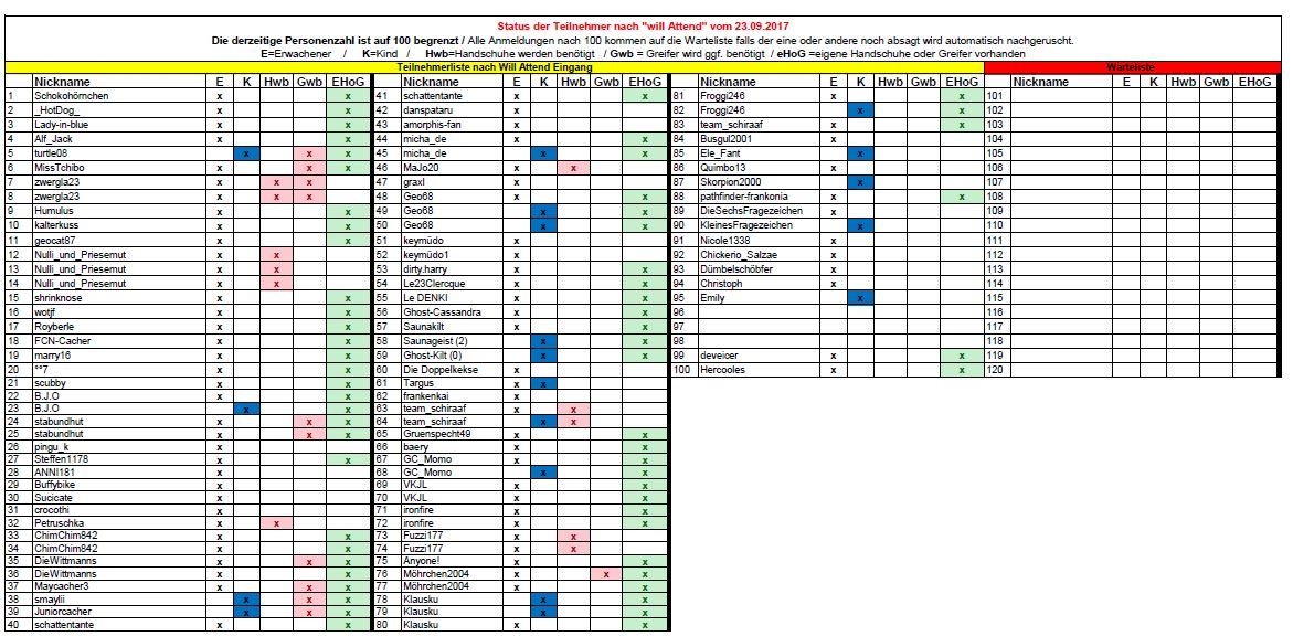 Bitte bis 15.09.2017 hier anmelden, da ich bis 16.09.2017 die ungefähre Teilnehmerzahl melden muss. Auf +/-5 Personen wird es dann nicht ankommen.