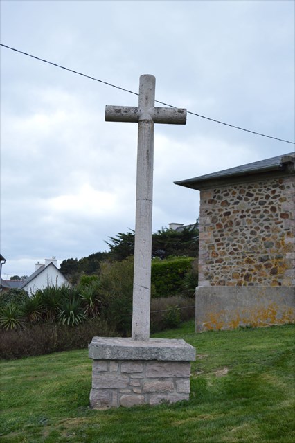Croix de chemin datant de l'année 1879, Erigée à l'origine au Minihy contre un mur de la maison appartenant à Rose Ollivault (maison sise au 4, rue du port ), elle a été déplacée et dressée sur le terre-plein de la chapelle de Dahouët en 1983.