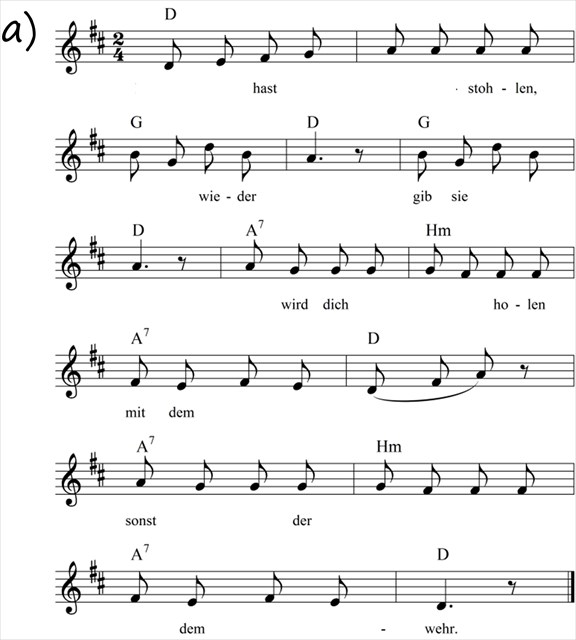 Als Mutter von zwei Söhnen hat sie sicher auch viele Lieder gesungen. Jedoch habe ich nur noch die Noten und ein paar Teile des Textes. Es ist jeweils die iterierte Quersumme des Titels gesucht.