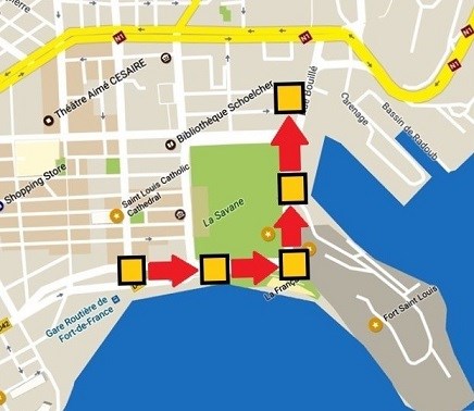 My first Wherigo ( the first one for Martinique ) takes you into a 5 steps tour (approx. 1 km) to discover the part 1 of the Histories monuments of Fort de France through the ages. Expect 1 hour or 45mn for geocacheurs regular customers.
