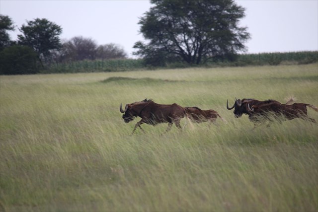 Black wildebeest on a wild run.