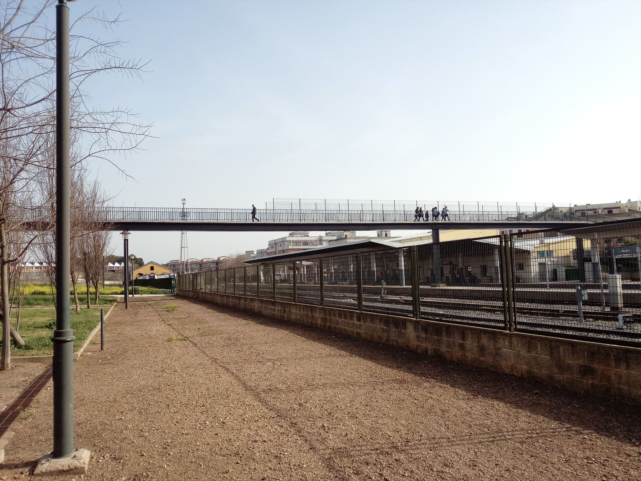 Puente peatonal que atraviesa las vias del tren uniendo la avenida de Carolina Coronado con el barrio del gurugu popularmente conocido por ese nombre
