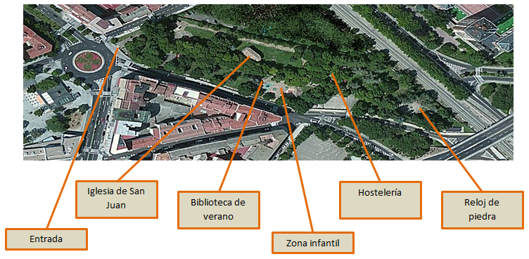 El parque esconde, además del caché, varios tesoros. Una de las curiosidades es la ermita románica de San Juan Bautista, cuyas piedras numeradas recuerdan que fue rescatada de ser anegada en un pantano, desmontada y montada. Cerca de la ermita, una pequeña biblioteca de verano y un parque de juegos. En el suelo, un mapa de la provincia. Y al final del parque, representando el inexorable paso del tiempo, un reloj de columnas y números en piedra. De vez en cuando, además, se puede ver Expo Aire y alguna verbena.