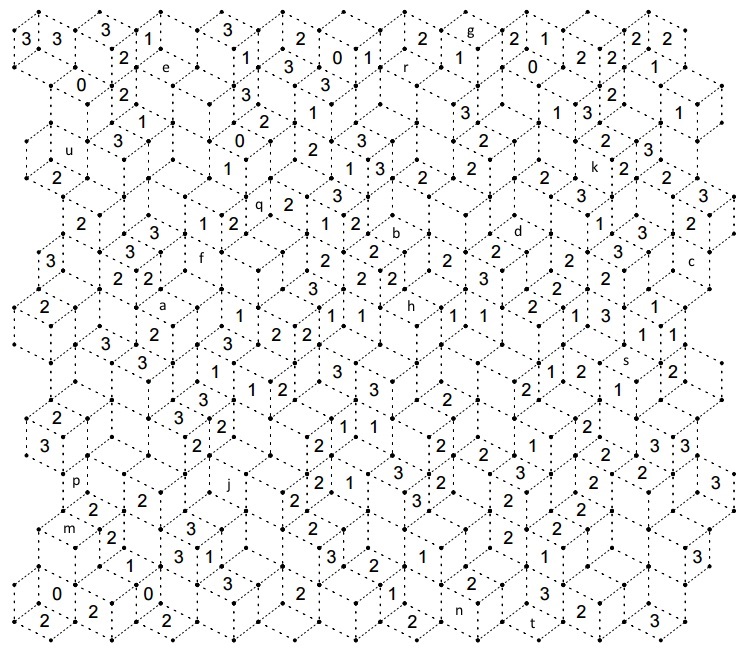 - Locate the letters a through to u in the puzzle (i, l and o are omitted). For each letter, its numeric value is the number of lines around the cell.