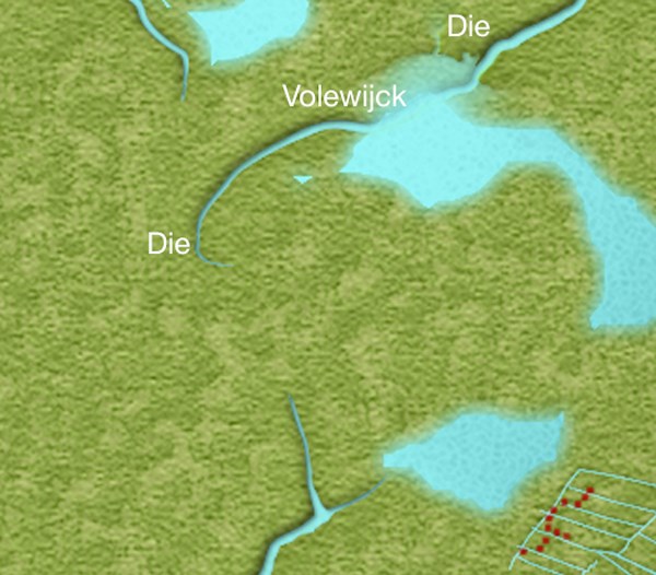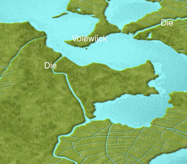 - In één van de plaatsen aan het Die ligt een andere geocache verstopt door mij. De cache draagt de naam van de plaats. Wat was het dagnummer van de datum waarop deze cache is verstopt? Antwoord=D