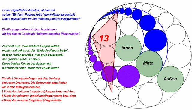 Damit jeder Cacher diese beiden geometrischen Figuren gleich berechnen bzw. konstruieren kann, gibt es drei markante Punkte die vorgegeben werden.
