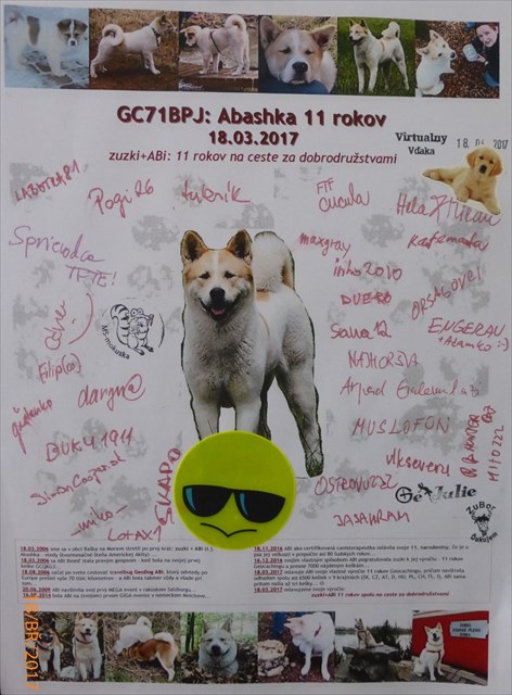 - 18.11.2016 ABi ako certifikovaná canisterapeutka oslávila svoje 11. narodeniny, čo je u psa jej veľkosti v prepočte asi 80 ľudských rokov...