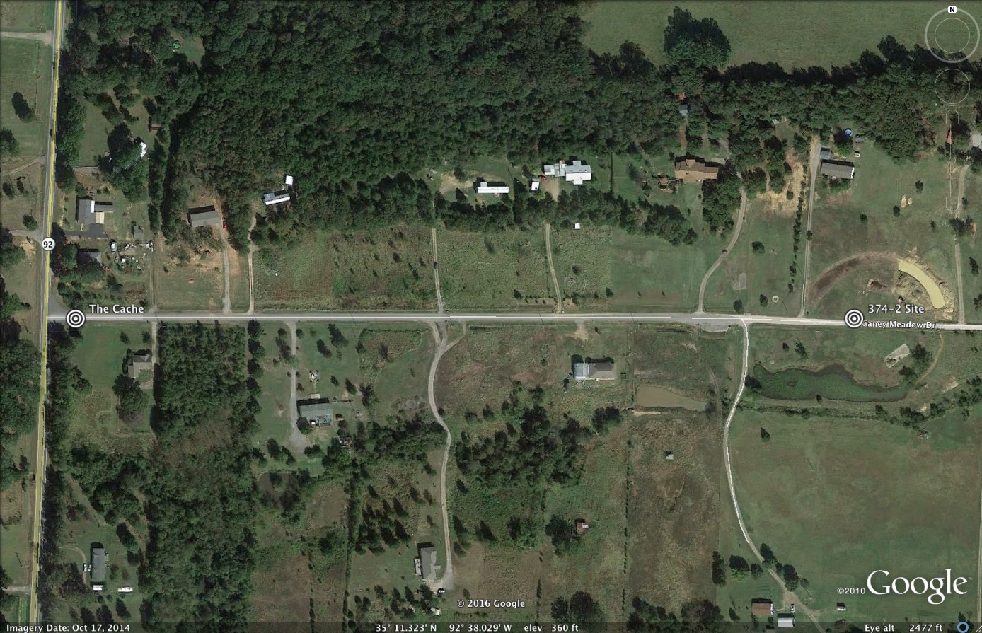 When you arrive at the cache location, you will be approximately 0.37 miles due west of the old missile silo. Unlike other silo sites in this series you can actually drive right over the old site! The road you will be at leads into a residential area build all around the old site and the road passes right over the center of the old site! (See photo below.) After finding the cache, take a few minutes to drive to the old site (see reference waypoint) and see how it looks just like any other rural neighborhood. Except at the waypoint coordinates, things do look a little different, if you look carefully.
