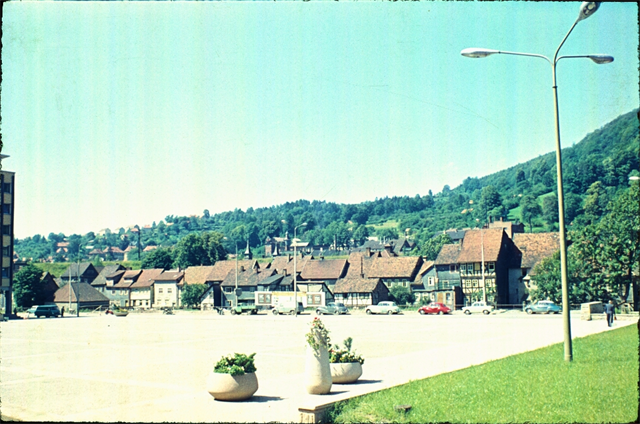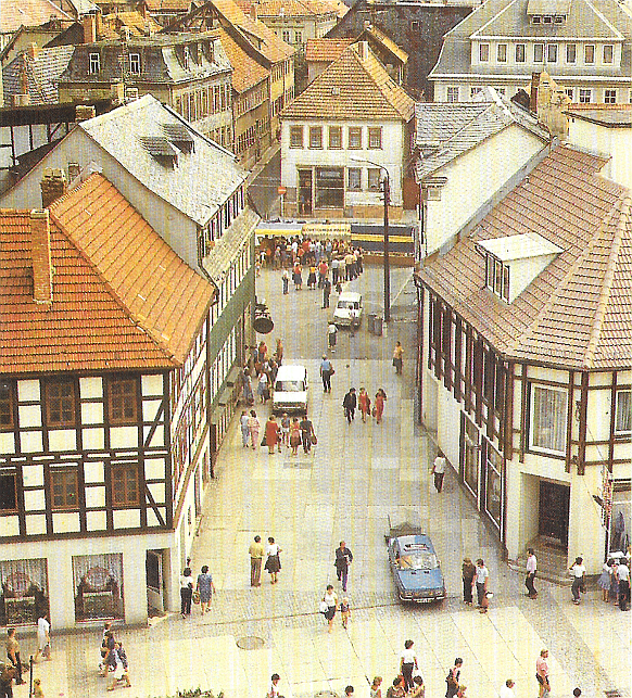 Das zweite Bild hat genau die entgegengesetzte Blickrichtung. Es wurde also genau von dem kleinen Platz aus aufgenommen. Das Centrum Warenhaus sitzt wie ein riesiger Fremdkörper innerhalb der historischen kleinstädtischen Bebauung.