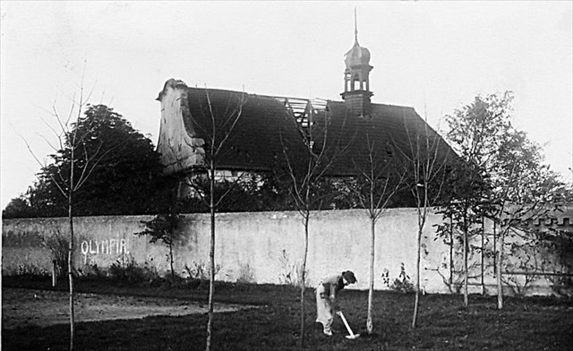 D = Kostel byl poničen během bombardování Kolína 17. – 18. dubna 1D 45.