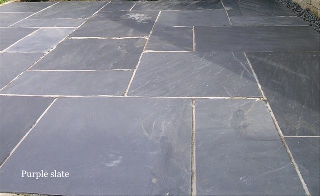 Slate comes in different colours and can be grey, black, blue, red, green and even purple. The purple slate here carries iron oxide (hematite). Examples of the many uses for slate are building stones, roof tiles, flooring, road paving, pool tables, writing tablets and blackboards.