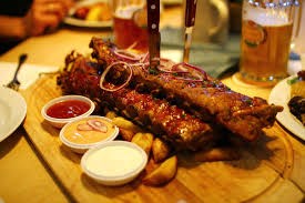 mit Ripperl, Ofenkartoffel und Maiskolben am